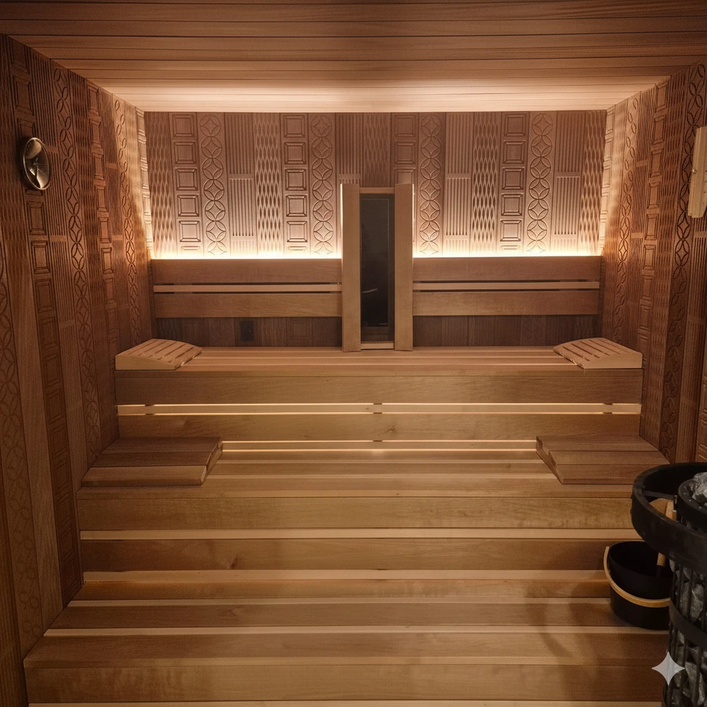 For DIY builders we provide a complete guide plus premium materials: cladding, alder bench boards, glass sauna doors and LED systems. We advise on heater sizing (most home saunas are 4–8m³) so you order the correct electric heater (6–9kW) or stove for efficiency and comfort.