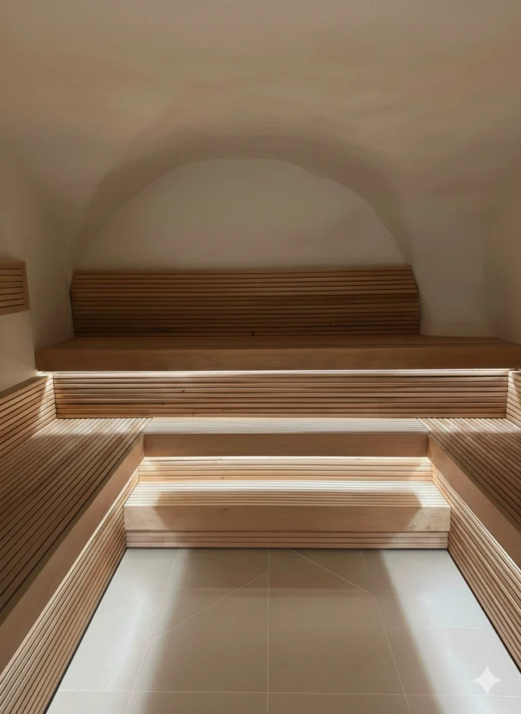 We design custom saunas for awkward or unique spaces: below‑stairs alcoves, rooftop terraces, garden studios and more. Our in‑situ builds use thermo‑treated timber, tailored bench layouts, integrated lighting and carefully planned ventilation and drainage so your sauna looks and performs exactly as intended.